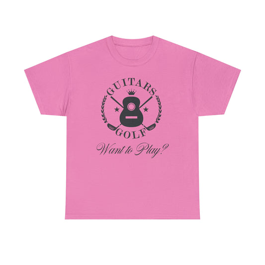 "Guitars and Golf" Black Logo Front on Your Color Choice Unisex Heavy Cotton Tee