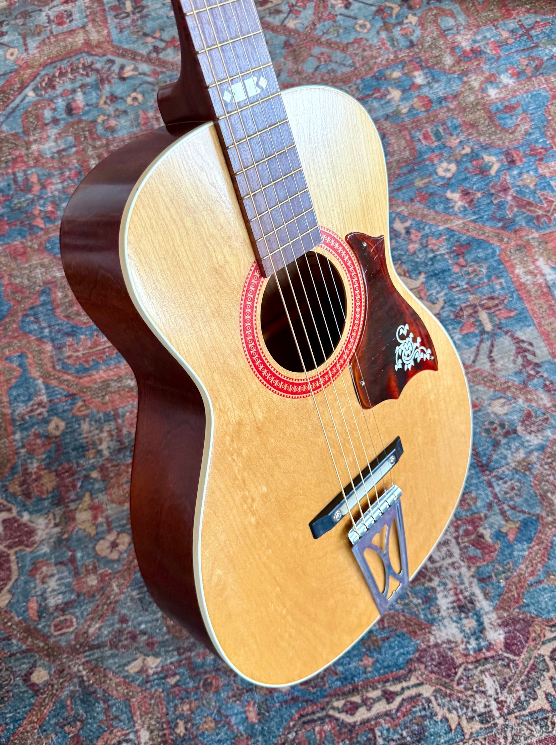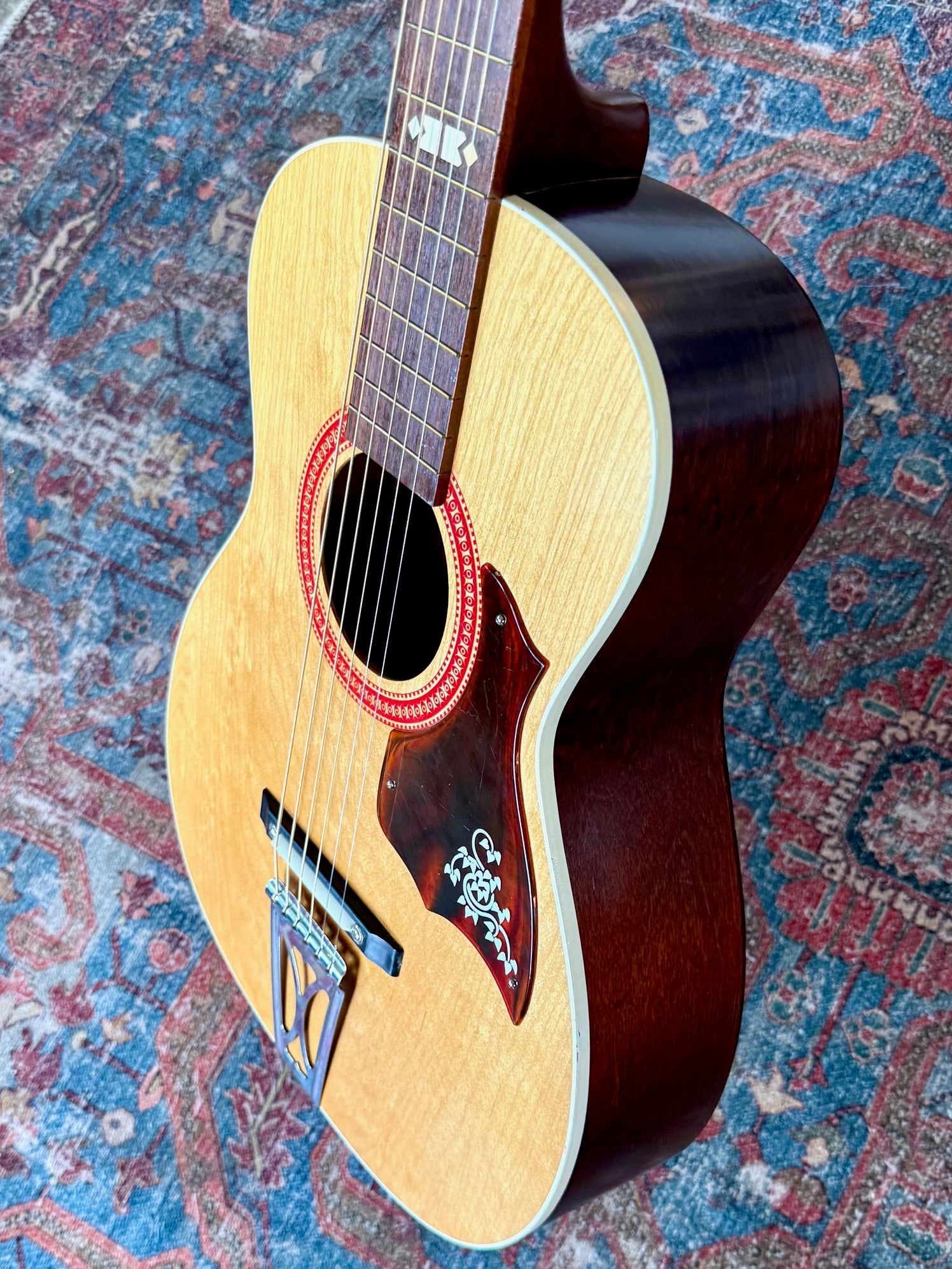 This is a Vintage 1971 Harmony Stella USA H928 SOLID BIRCH Parlor Guitar in Excellent Condition. This All Solid Birch guitar is marked F-71 MI indicating made in the USA in 1971. This guitar shows very little signs of use for its age. Freshly strung with new D'Addario Light Strings it sounds, looks and feels Great. It includes the original case and Slide Guitar Nut Attachment (see pics). It has an Adjustable floating bridge, chrome tailpiece, floral pickguard and includes the original case. Truly a sweet little guitar that packs Big Sound at a Great Price. See the pics for details and message me with any questions. Thank you. Just $265